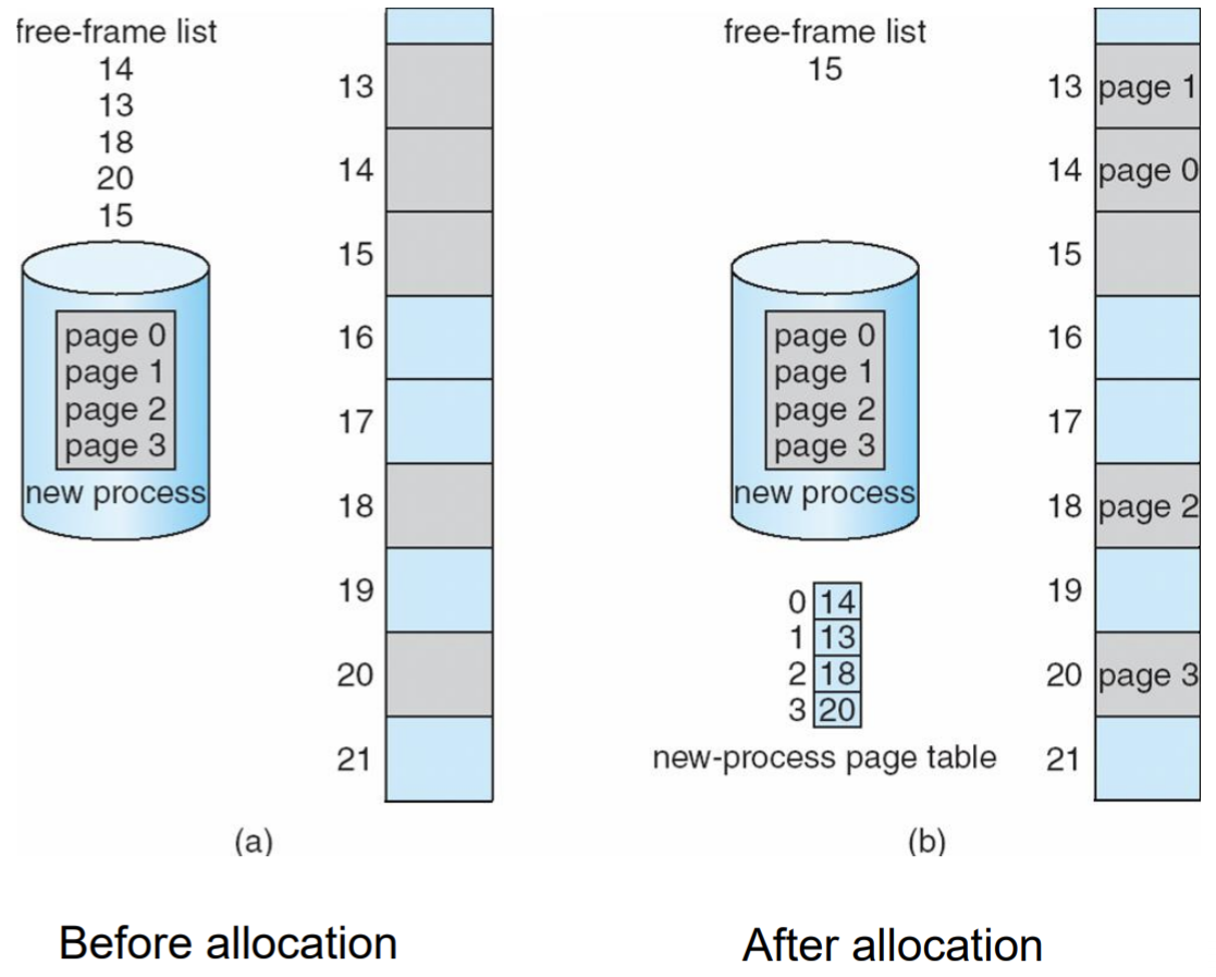 운영체제는 비어있는 프레임 리스트 정보를 가지고 있고 이를 통해 새로운 페이지 테이블을 만들어 준다.