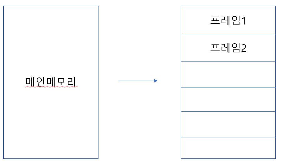 물리 메모리는 프레임이라 불리는 같은 크기 블록으로 나누어진다.